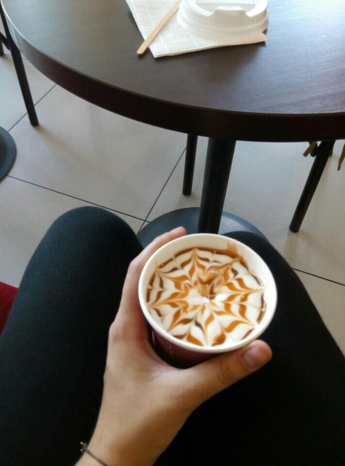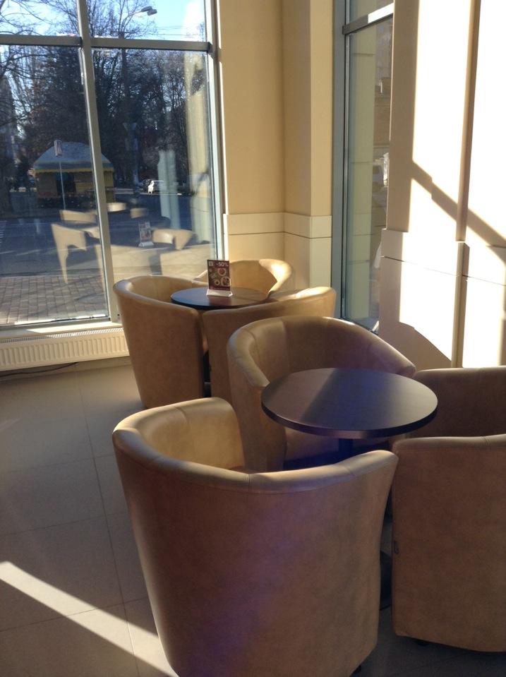 Десерты невкусные, кофе очень средний, переждать дождик можно, не более того.