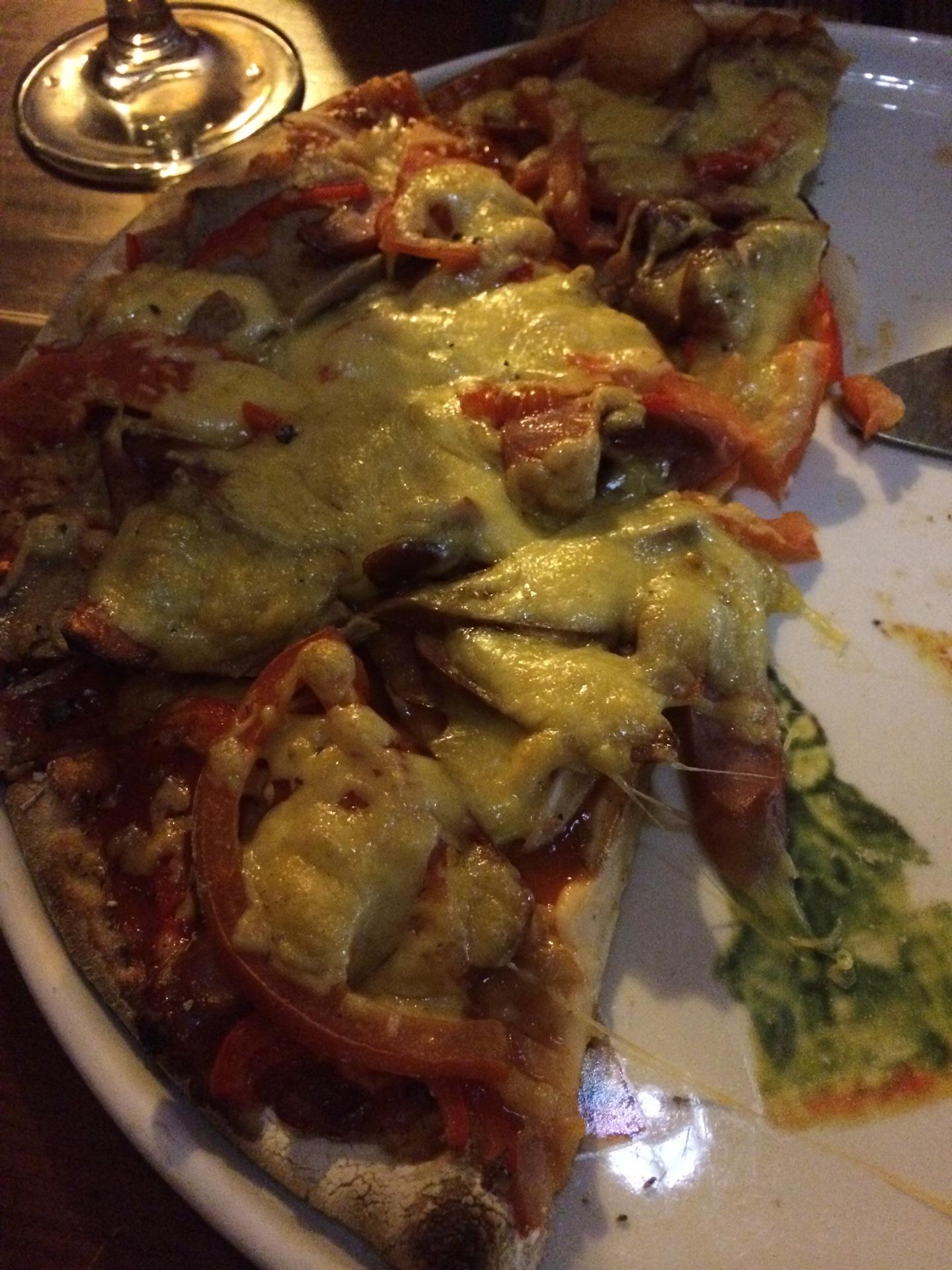 Очень вкусная мексиканская пицца, много начинки. Если бы подавали еще дополнительно оливковое масло цены бы ей не было)) хороший интерьер кожаные диваны удобные для больших компаний.+есть фреши👍