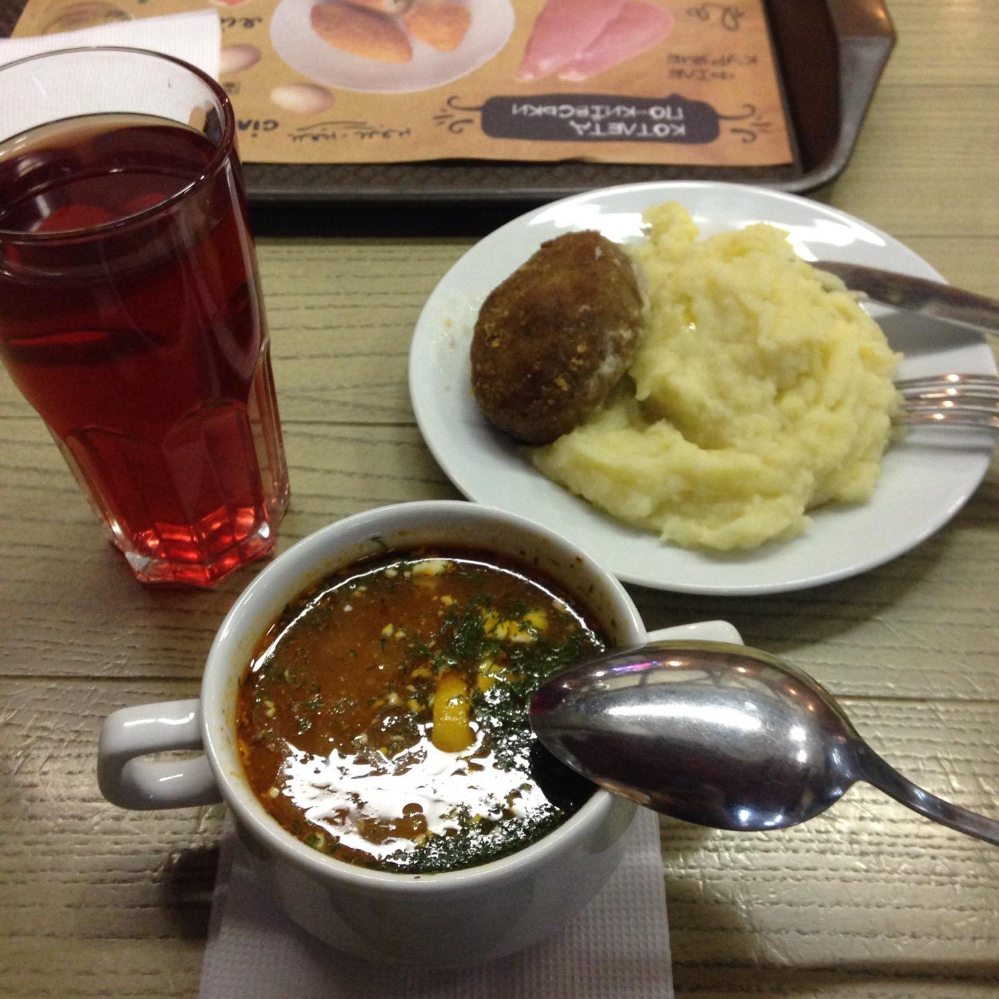 До оплаты разлила сок на пол. Пришлось платить за него :/ а так обычная ПХ