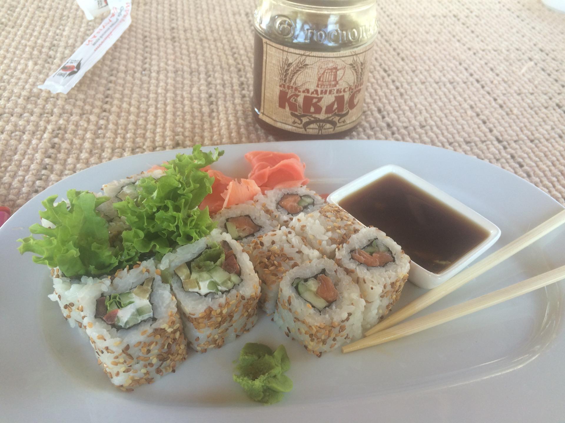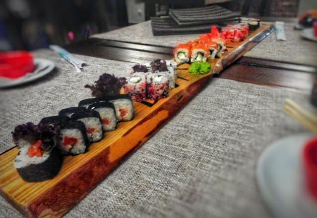 Очень вкусное пиво в банках и отличный сет метровых роллов со скидкой 50%. Отлично подходит для посиделок с друзьями на свежем воздухе и с кальяном)