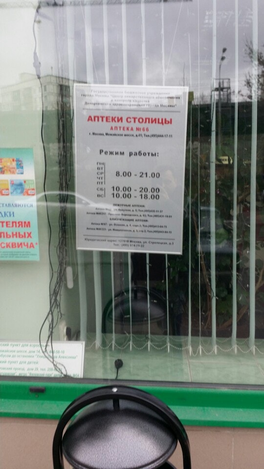 Бывает, что люди ищут эту аптека как Аптеки Столицы № 66. Мы стараемся поддерживать всю информацию о «Аптеки столицы» в актуальном состоянии. Если вы обнаружили неточность или ошибку, пожалуйста, исправьте ее.