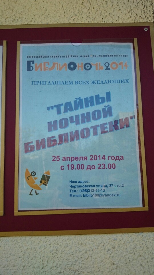 Бывает, что люди ищут эту библиотека как Городская библиотека № 198. Мы стараемся поддерживать всю информацию о «Библиотека №198» в актуальном состоянии. Если вы обнаружили неточность или ошибку, пожалуйста, исправьте ее.