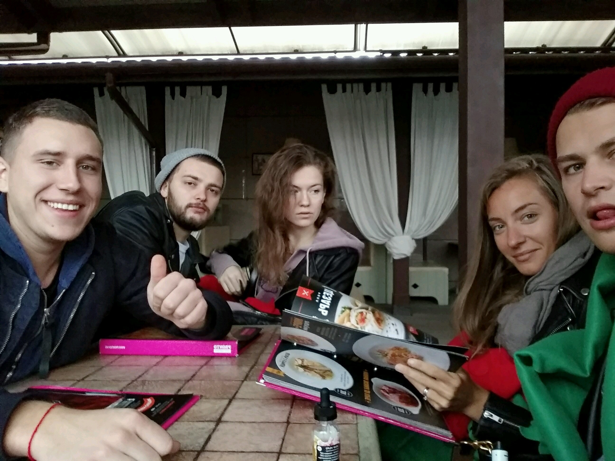 В ресторане разрешено курить сигареты на веранде, вся открытая площадка в дыму. Пицца без вкуса совсем. Сыра нет, все пытаются залить острым перцем...