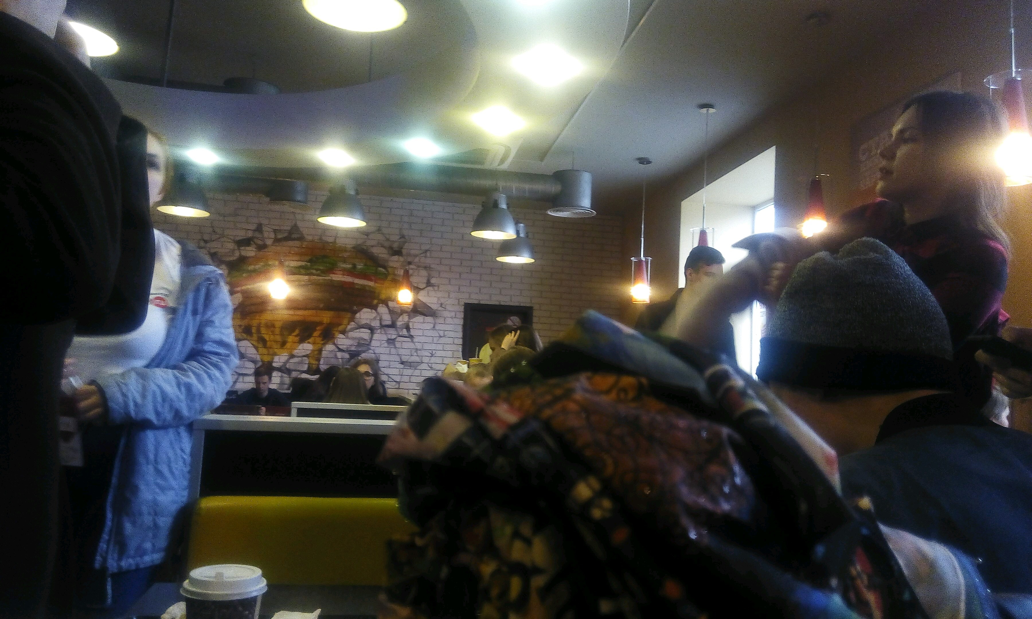 Народу тьма, особенно подростков на скейтах/роликах и всем тому подобном. Но обслуживание при этом быстрое, работают все оперативно. Есть "окошко" заказов на улице.