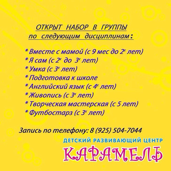 Бывает, что люди ищут этот детский развлекательный центр как Детский центр "Карамель". Мы стараемся поддерживать всю информацию о «Детский досугово-развивающий центр Карамель» в актуальном состоянии. Если вы обнаружили неточность или ошибку, пожалуйста, исправьте ее.