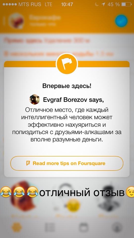 Отличное место, где каждый интеллигентный человек может эффективно нахуяриться и попиздиться с друзьями-алкашами за вполне разумные деньги.