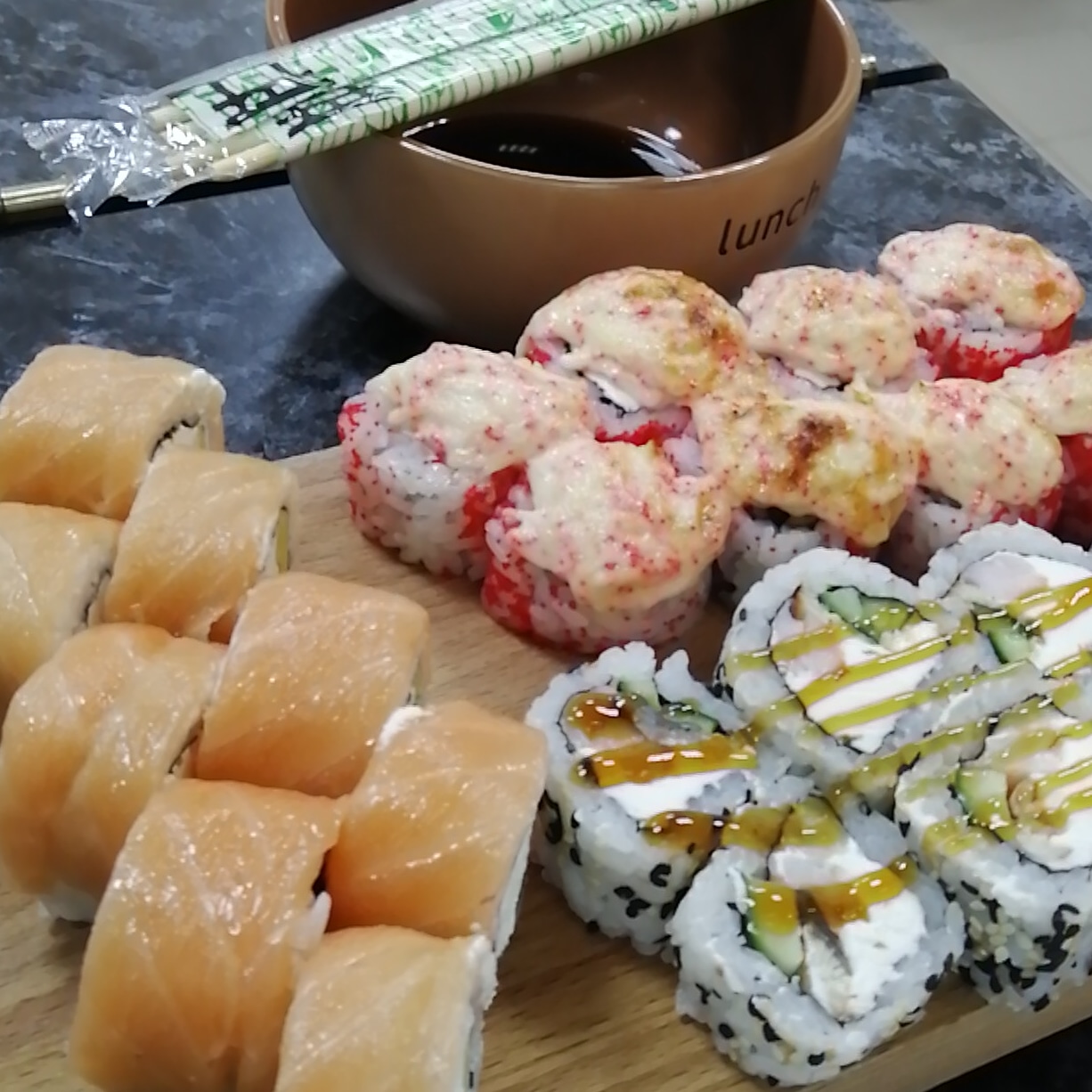 Очень вкусные суши, роллы(всегда из свежей рыбы и незабываемо вкусного риса)Пицца на тонком тесте, с оригинальным Аргентинским сыром Моцарелла