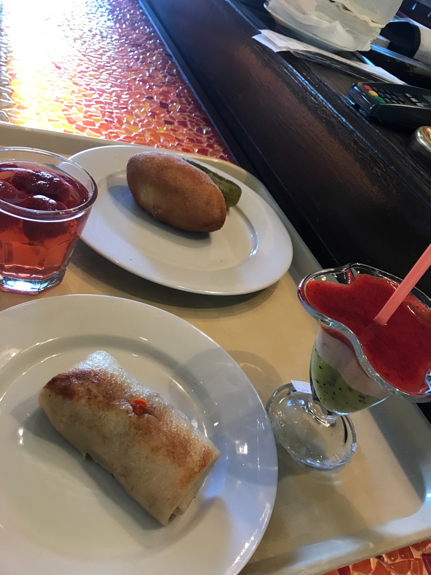 Очень низкое качество еды и формат столовки по цене приличного места. Счёт меньше 500р не бывает. "Фузилли с морепродуктами" оказались просто тарелкой высохших за день макарон, без морепродуктов.