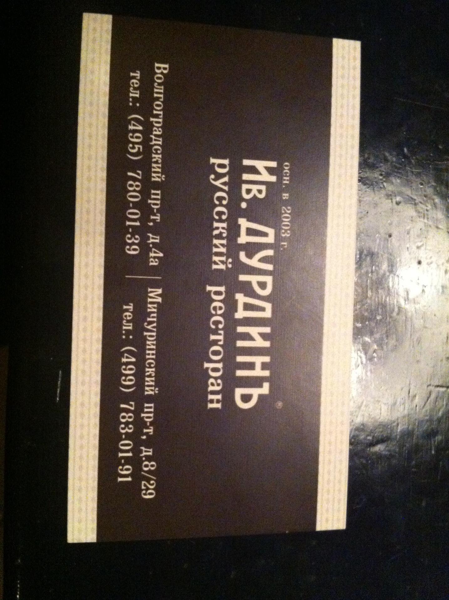 🍴 Адрес, телефон, часы работы ресторана и 121 отзыв о «Ив. Дурдинъ».