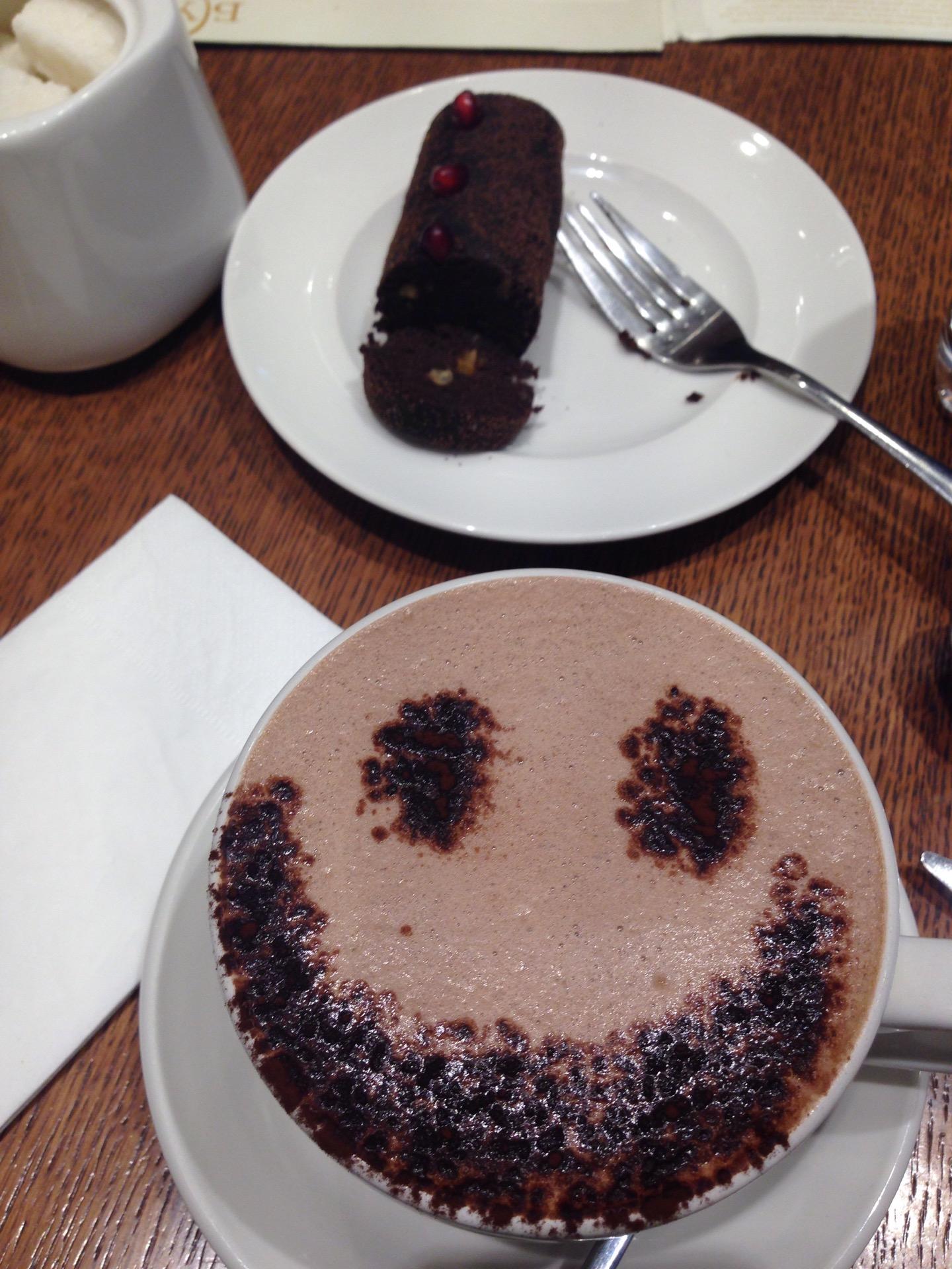 Очень вкусный кофе и пирожное с карамелью.