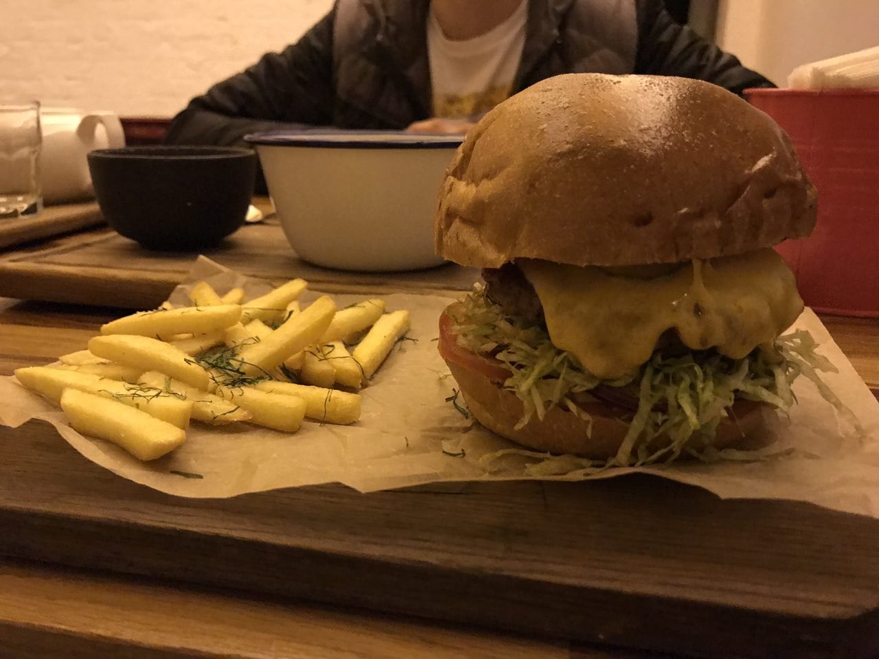 Неплохие супы и бургеры, нежнееейшее (привет друже) тесто пиццы =) Маленький зал, в подвале есть большой стол человек на 10.