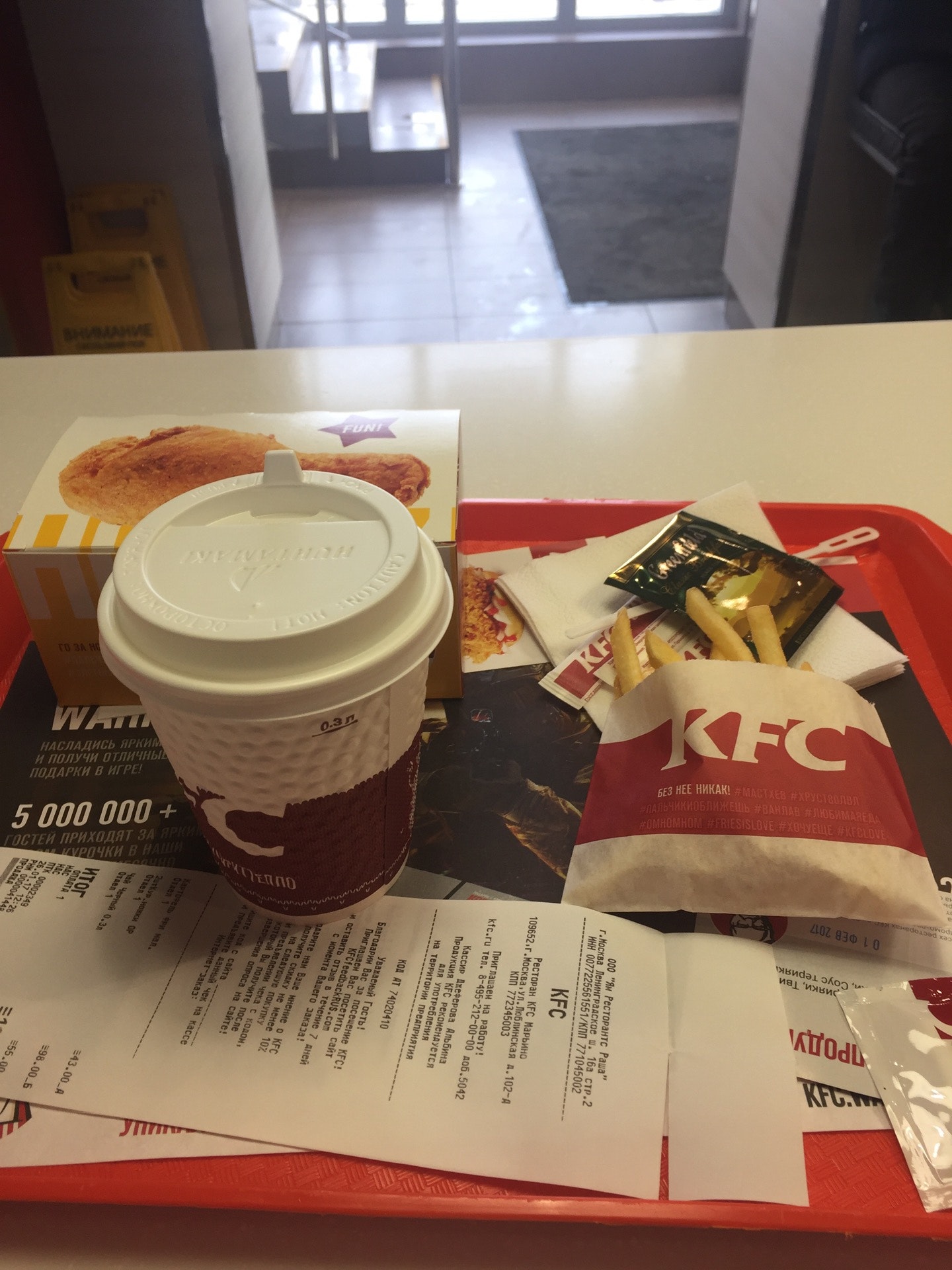Больше не буду за фастфудом бежать в kfc. Невкусно было. 2 чиза, которые не имеют вкуса чиза и очень перченные стрипсы.