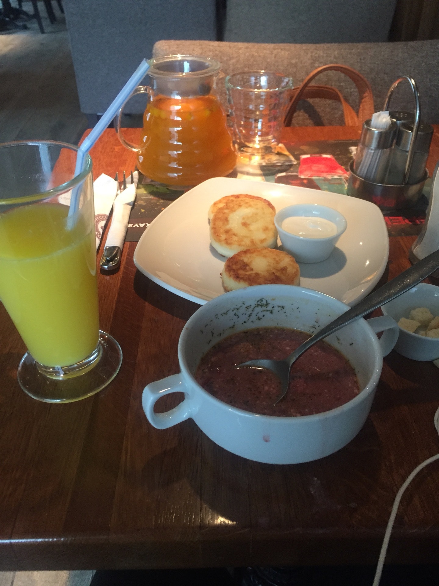 Была два раза в обеденный перерыв. Очень медленные официанты!!! И не сказать, что дружелюбные. В целом более-менее вкусно, но обслуживание на тройку.