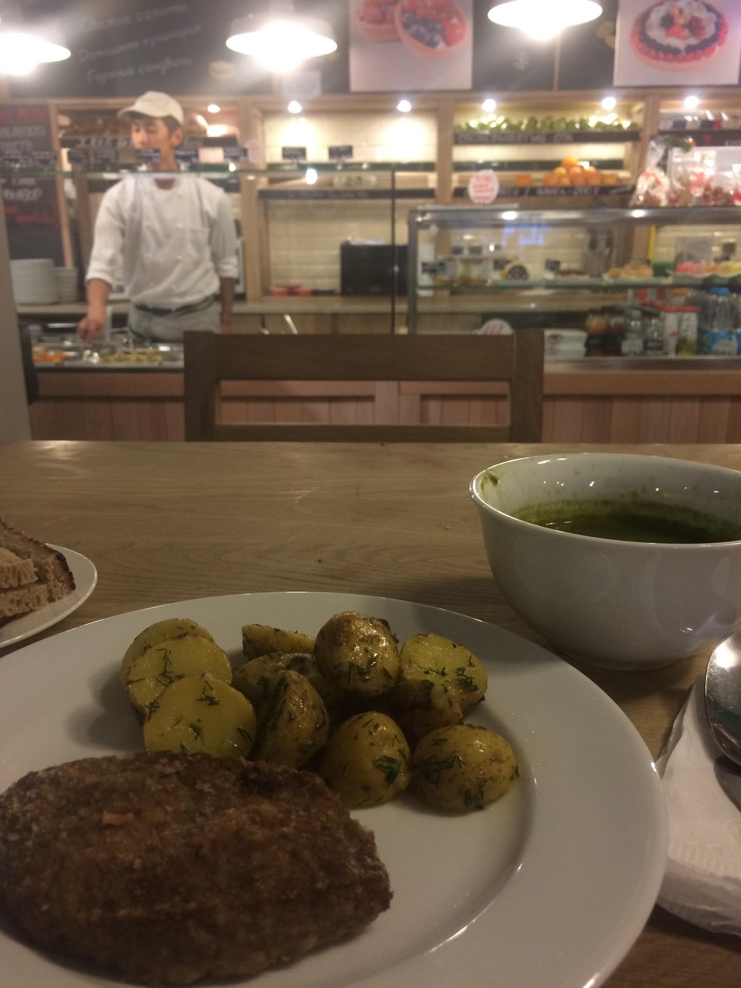 Кафе-пекарня при магазине "Перекресток". В продаже свежий хлеб, сделанный вручную, выпечка, десерты, кулинария, а также большой выбор блюд в формате "с собой".