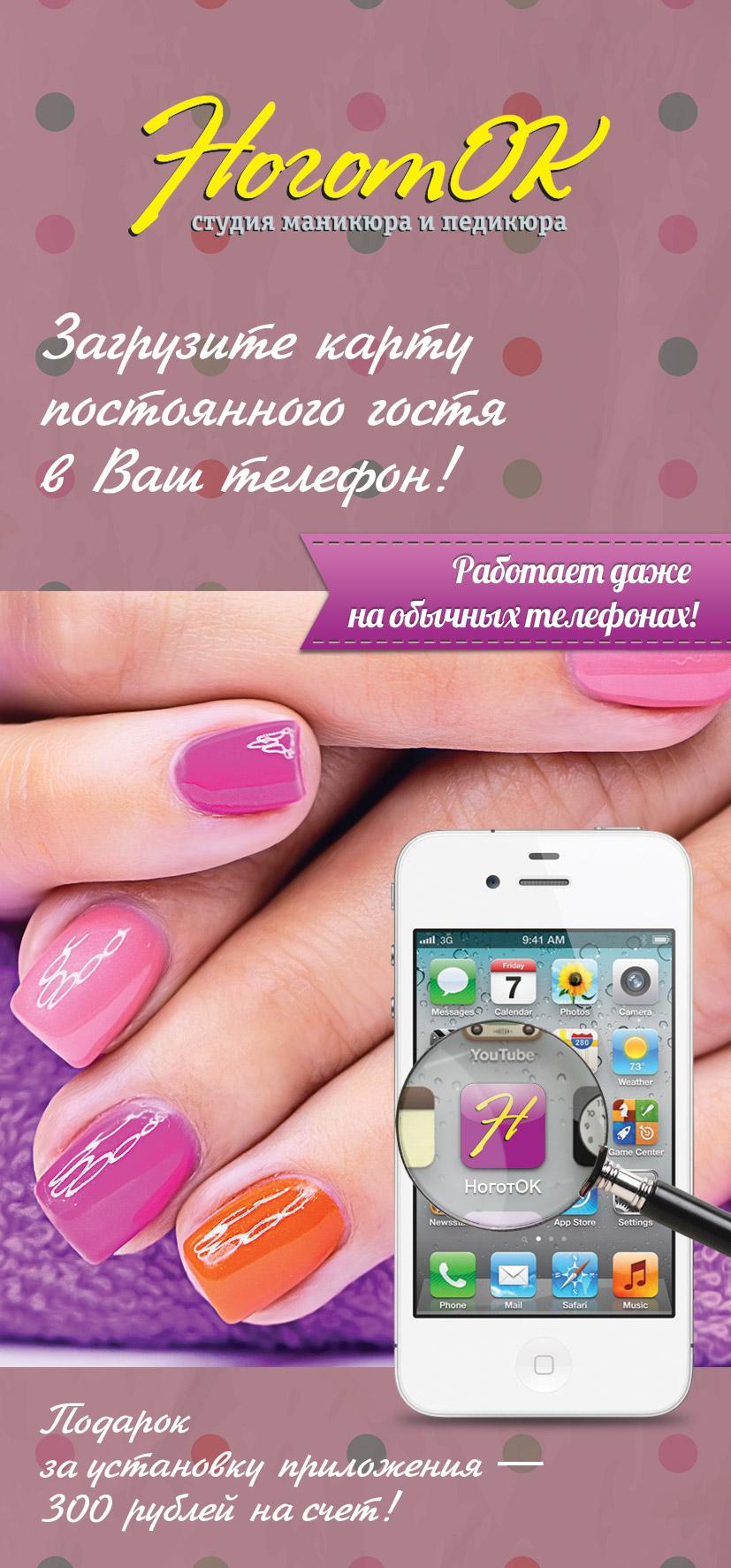 К мастеру можно записаться через мобильное приложение Ноготка, за его установку сразу дают 300 рублей скидки. Если копить в приложении баллы, то ими можно оплатить любую услугу или получить подарки