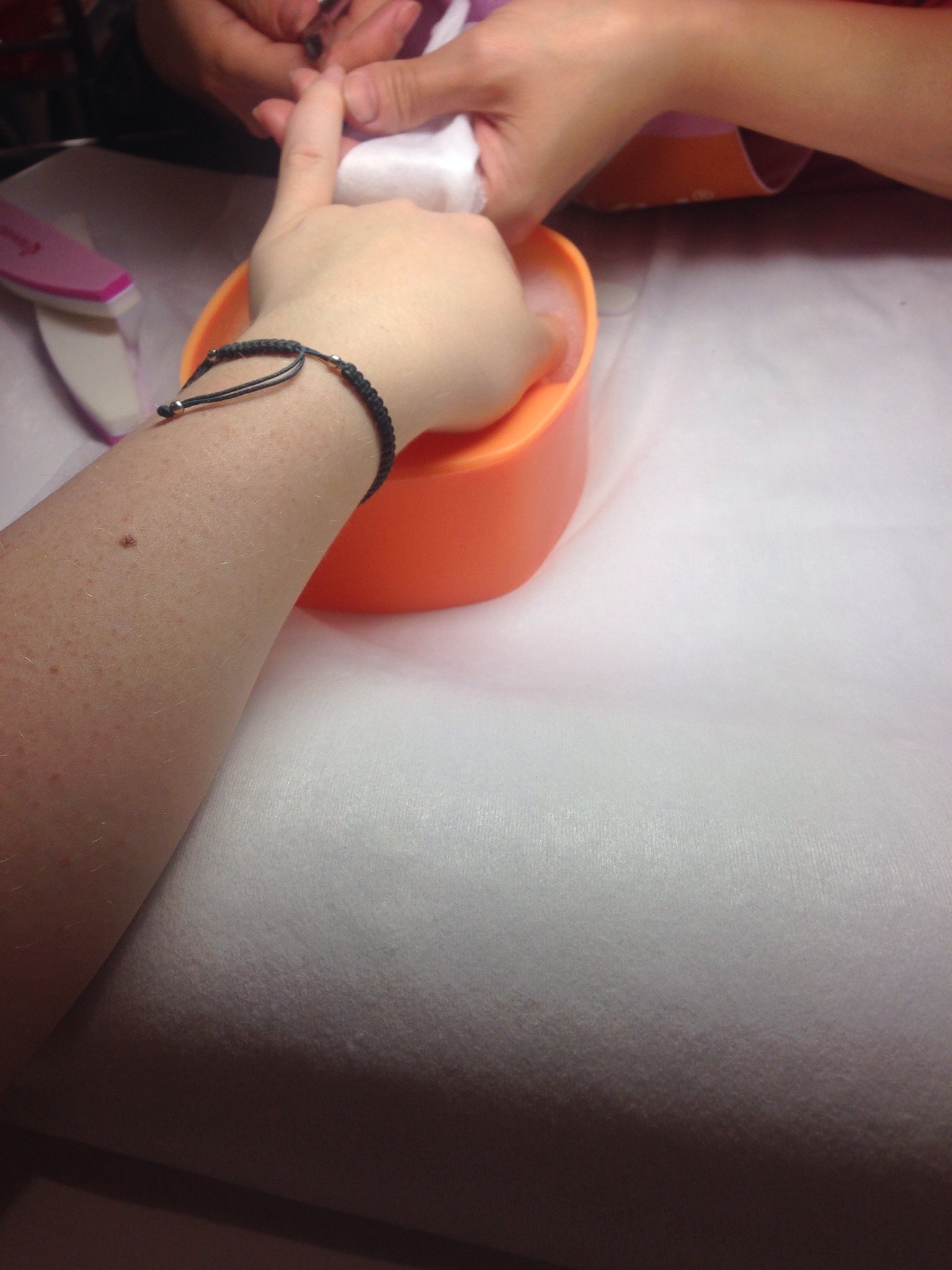 Отличный горячий маникюр с ванночкой. Кожа после крема и массажа оживает, остальное довершают щипчики в умелых руках. Ходила бы чаще, но и в две недели раз помогает поддерживать руки в достойном виде