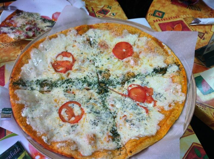Достаточно неплохая пицца,можно взять по половинке разной. Цена, как везде,в среднем от 400 р. Ожидали минут 15