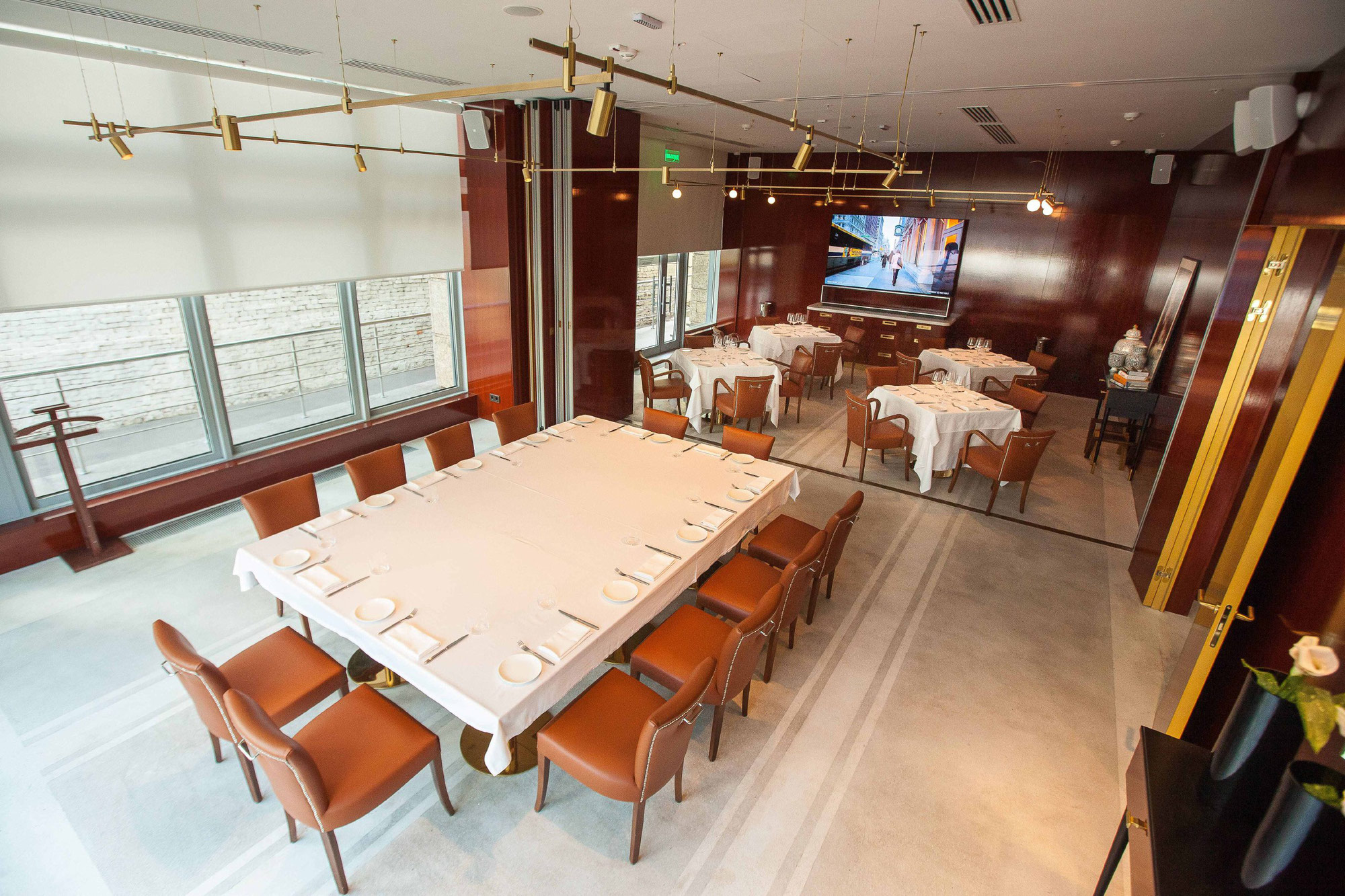 Два банкетных зала и welcome-зона для частных и светских событий. Ресторан идеально подойдет для роскошных кулуарных свадеб, дней рождений и юбилеев, деловых мероприятий и презентаций.