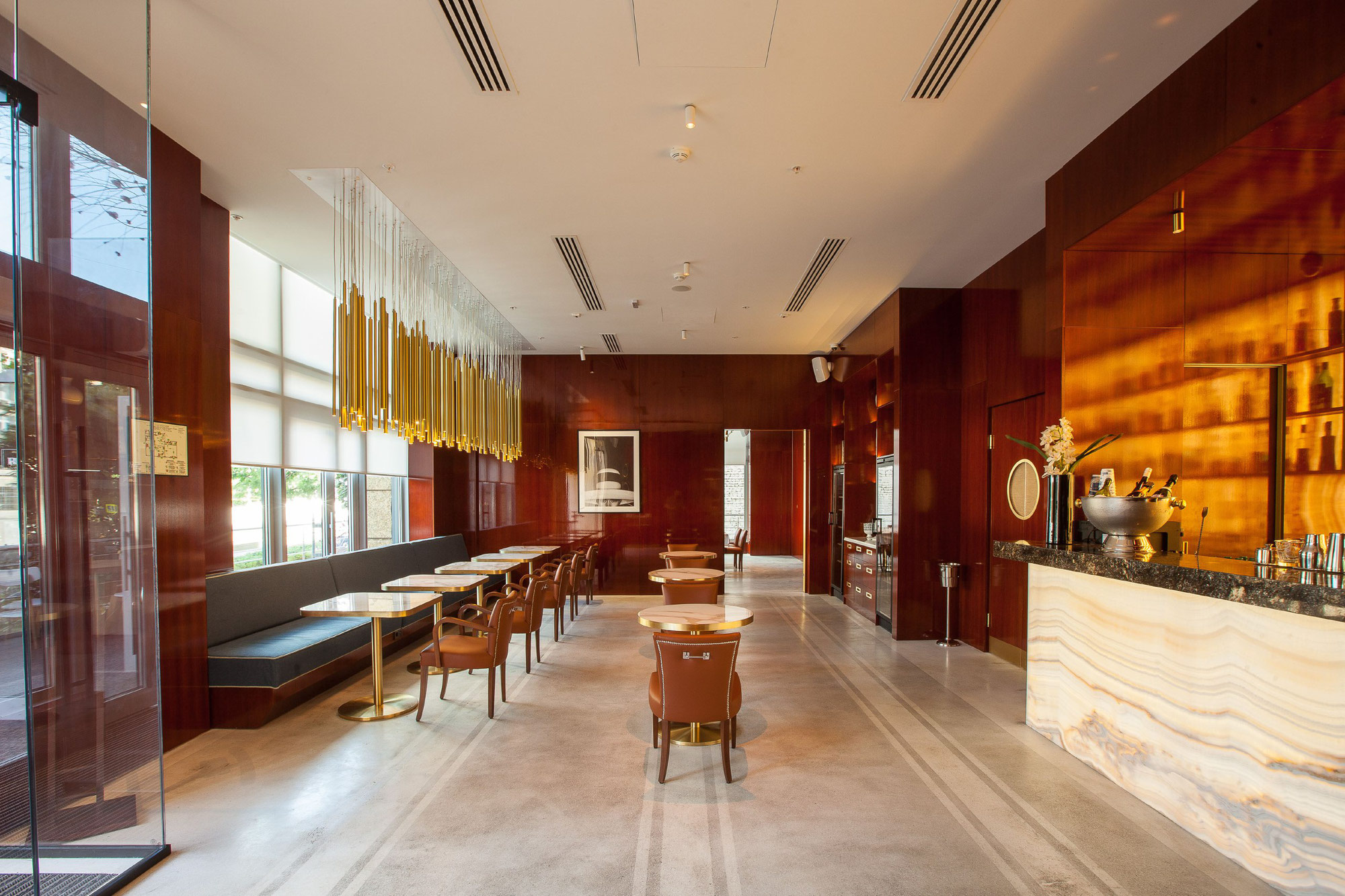Настоящая классика Беверли Хиллз в центре Москвы. Представляем новое event-пространство с атмосферой роскошного Голливудского ресторана с панелями лакированного дерева в потолок, латунными деталями, светящимся баром из оникса, и мраморными столами. Дизайнерский интерьер ресторана погружает в те самые мечты, где каждый может переместиться во времени и пространстве и оказаться за соседним столом с иконой Голливуда.