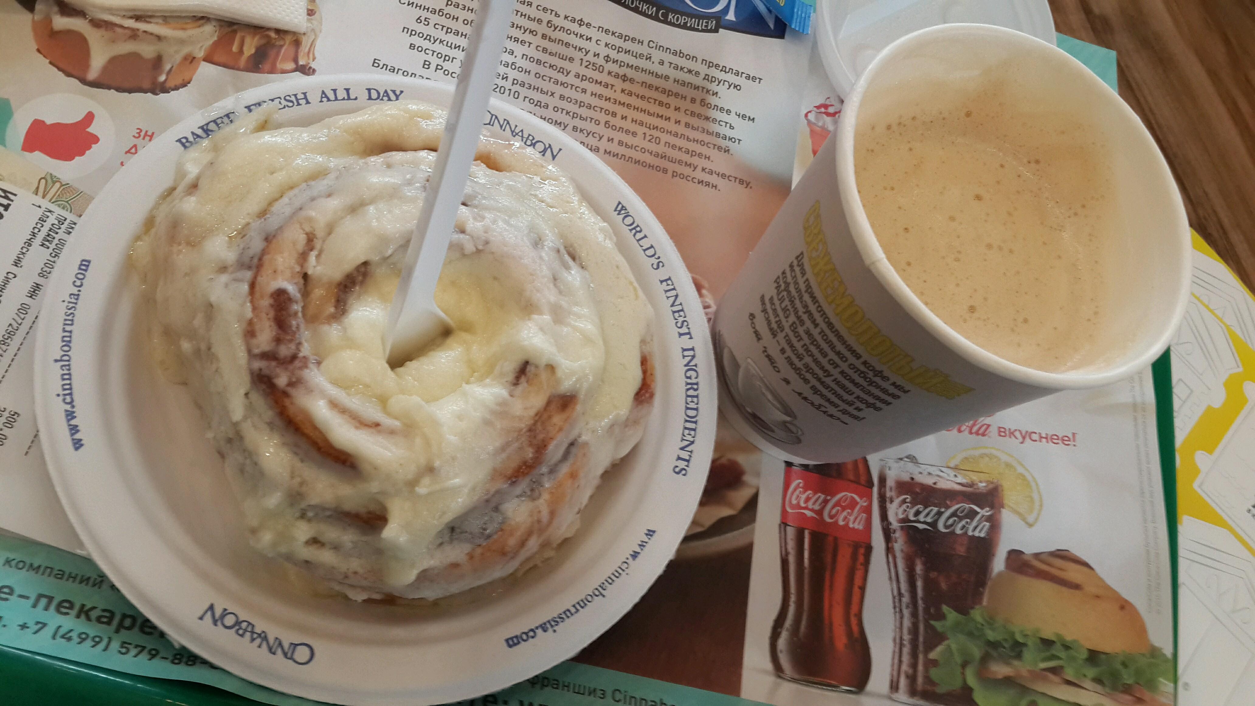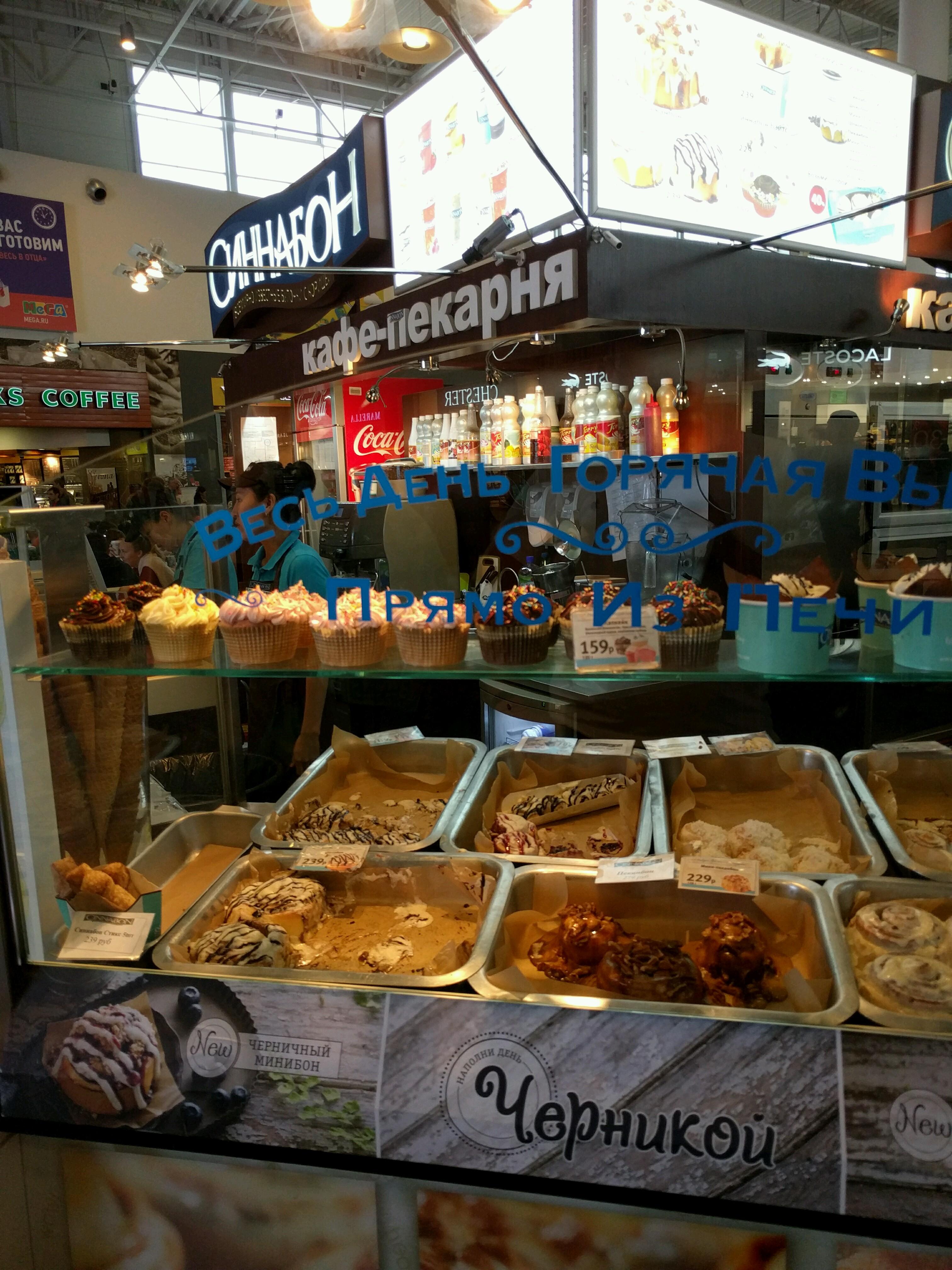 Чего-то уж очень дорогой кофе, американо по 200 руб. - как в нормальной кофейне, а не на пятачке фуд-корта... И да, отличные синнамоны реально испортили сладкой глазурью :-(