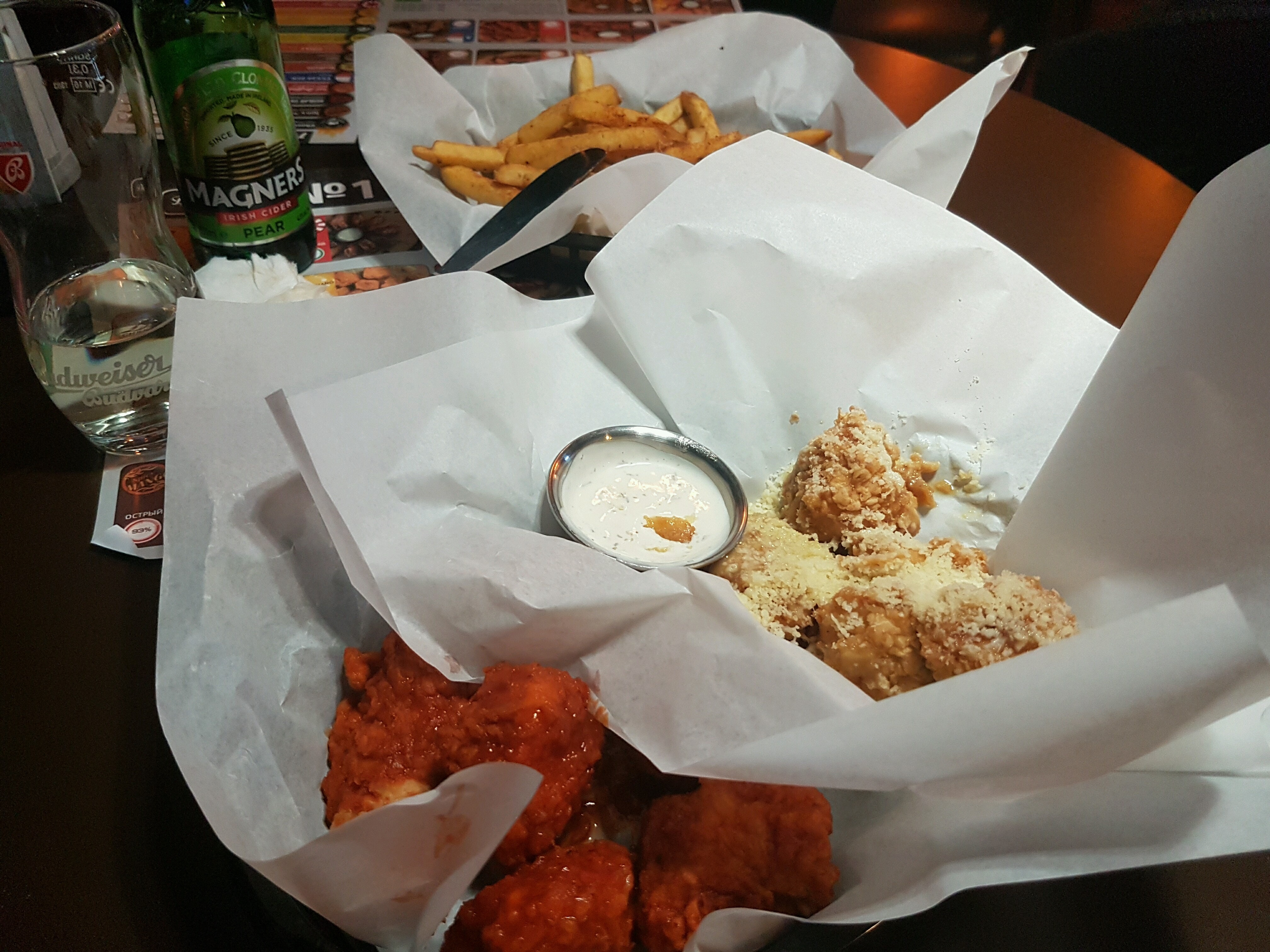 Крылышки шикарные, а вот стрипсы суховаты.