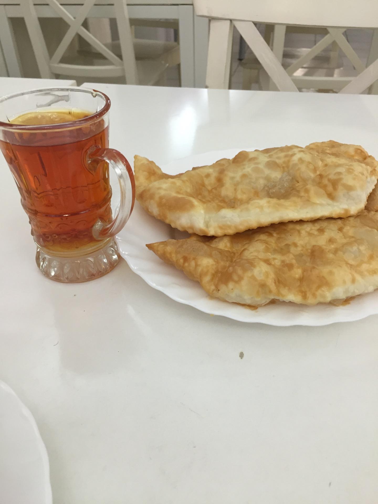 Об СССР напоминает запах при входе и в зале, так пахло в советском общепите;) чебуреки вкусные , все стоят по 75 руб (на 03.2017). Обслуживают быстро.