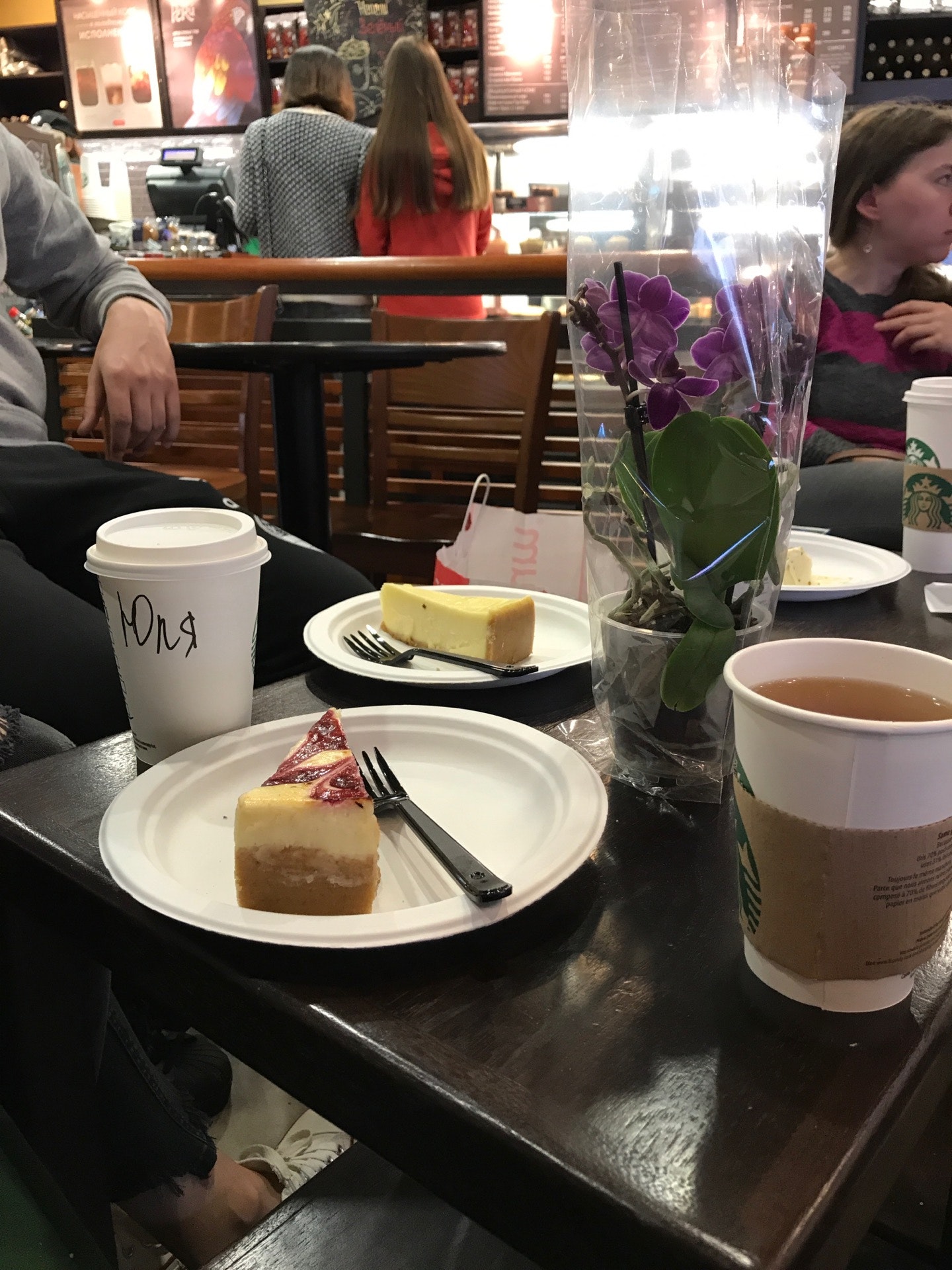 Как и в любом старбаксе, здесь пережаренный кофе, и ужасно взбитое, перегретое молоко в пузырях. Положение спасают только химические сиропы, которые от души нальют вам в стаканчик, чтобы перебить вкус