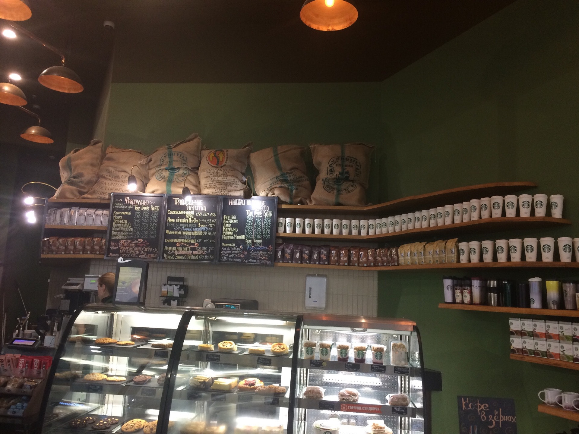 Очень приветливый персонал. Тихо и уютно. Единственное нарекание - слабое разнообразите сладостей, по сравнению с другими кафе сети Starbucks