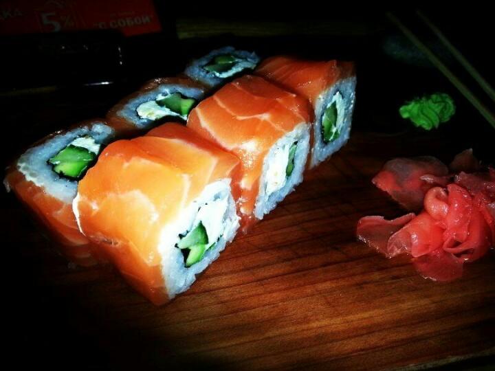 Вкусные роллы, столы стоят не близко. Сохраняется "зона комфорта"