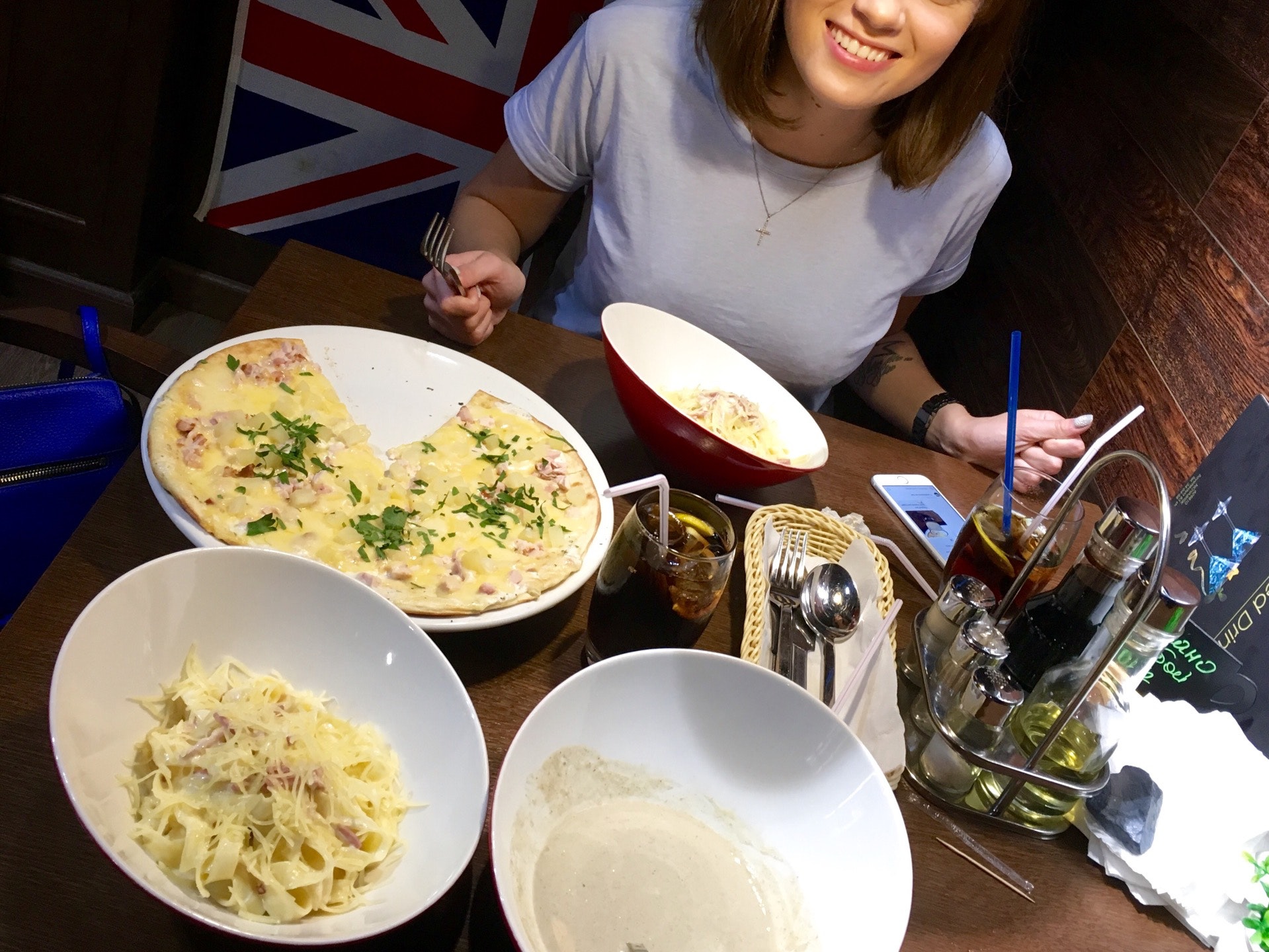 Пицца безвкусная, чай в пакетике и заварник с кипятком отдельно друг от друга. Но обстановка и атмосфера заведения на уровне