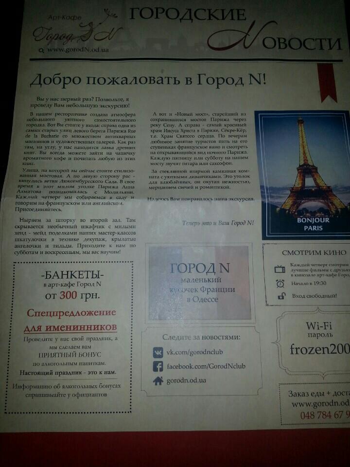 Арт-кафе Город N — последние отзывы