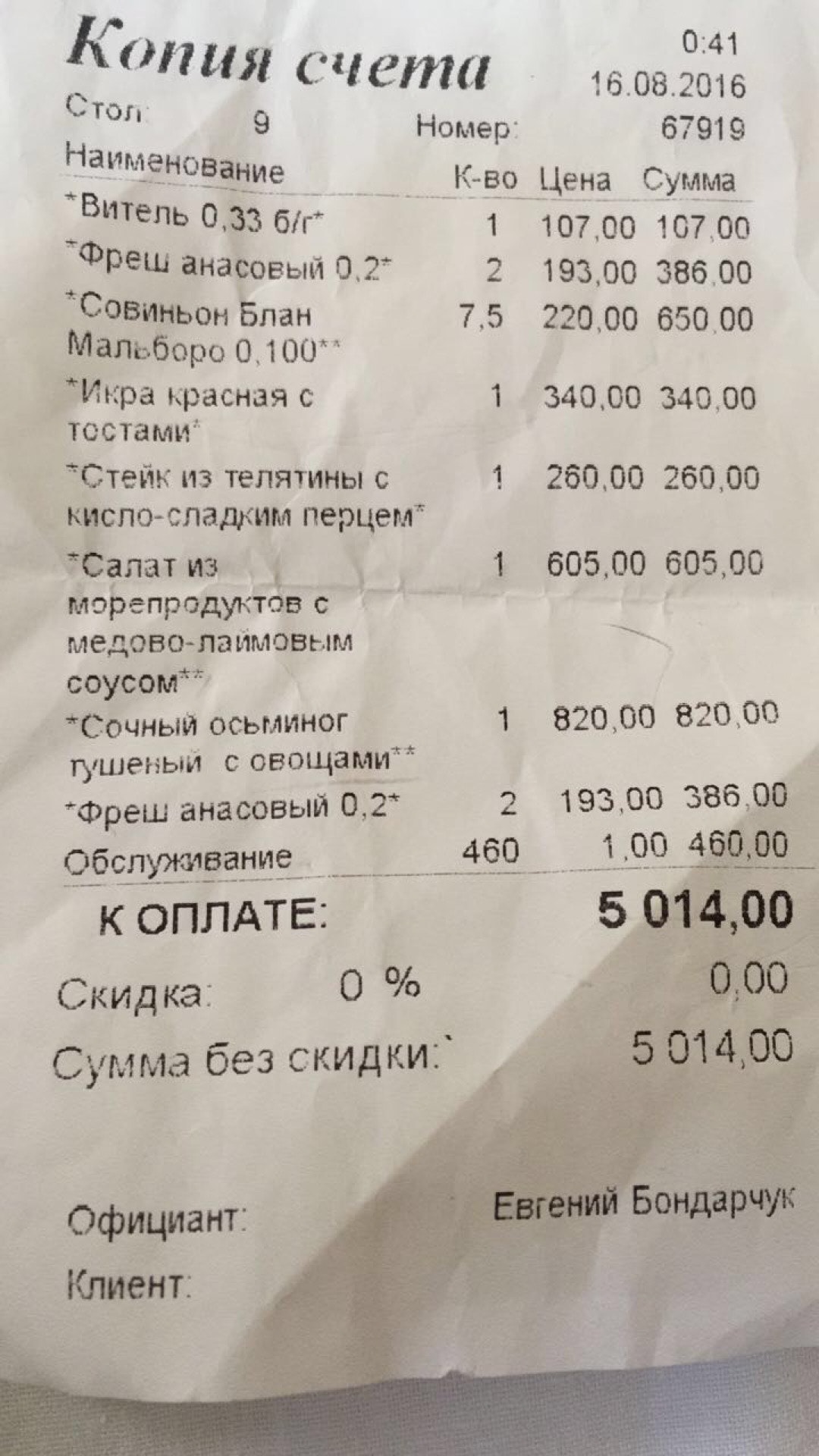 Selfie, вопрос к вам: мы были у вас в прошлом году хорошо погуляли и заплатили счёт около 3000грн за четверых. Как мой друг мог покушать у вас на двоих на 5000грн? У вас особые цены для иностранцев?