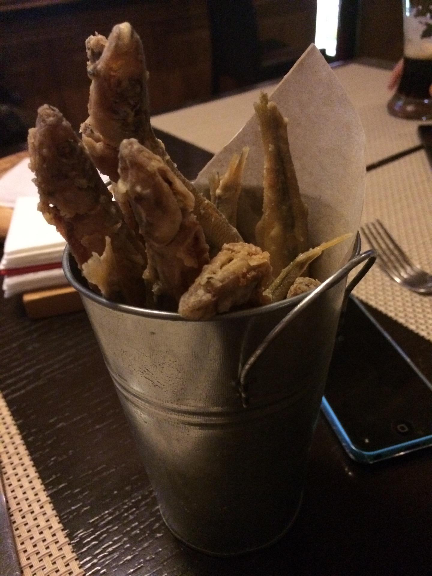 Вместо сковородочки с жареной картошкой, курицей и грибами принесли сухой картофель из фритюра, пересоленый с очень странным мясом((( фу.